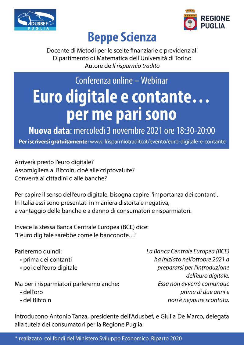La Banca Centrale Europea (BCE) ha iniziato nell’ottobre 2021 a prepararsi per l’introduzione dell’euro digitale. Essa non avverrà comunque prima di due anni e non è neppure scontata.